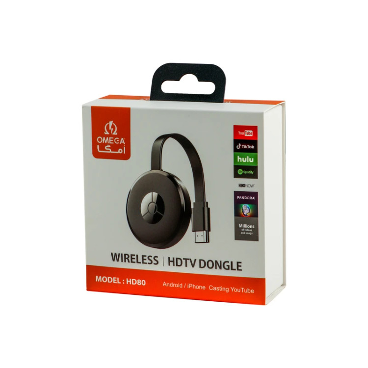 مدتها است که رابط و کابل HDMI به طور کلی سایر رابطها و درگاههای منتقل کنندهی صدا و تصویر را به دست فراموشی سپردهاند، چرا که کابل HDMI میتواند بدون افت کیفیت صدا و تصویر را منتقل کند. امروزه تنوع بسیار بالاتری در کابلهای HDMI وجود دارد و حتی این رابط در قالب دانگل هم در دسترس قرار دارد و میتوان برای اتصال گوشیهای هوشمند به مانیتورها و تلویزیونها از آنها استفاده کرد. دانگل HDMI امگا مدل HD80 از جمله محصولات با کیفیت و پرفروش در این زمینه است که امکانات مختلفی اعم از وضوح تصویر 1080 و پشتیبانی از WiFi را در خود میبیند. لازم به ذکر است که این دانگل HDMI از ویژگی AirPlay هم پشتیبانی میکند و این اجازه را به دارندگانش میدهد تا بتوانند تصاویر تبلتها و گوشیهای مبتنی بر سیستم عاملهای اندرویدی و iOS را در تلویزیون یا مانیتورهای دارای درگاه HDMI بدون نیاز به هیچ کابلی پخش کنند.