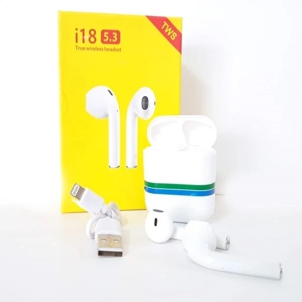 هندزفری بلوتوث مدل i18-TWS نوع گوشی: دو گوشی وزن: 40 گرم نسخه بلوتوث: 5 نوع اتصال: بیسیم نوع باتری: لیتیومی محدوده عملکرد: 12 متر مناسب برای: مکالمه، ورزش، کاربری عمومی اقلام همراه هدفون: باکس شارژ کابل شارژ قابلیتهای هدفون، هدست و هندزفری: نشانگر LED، دارای میکروفون
